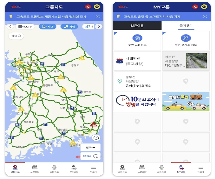 고속도로 교통상황 앱의 유용한 기능