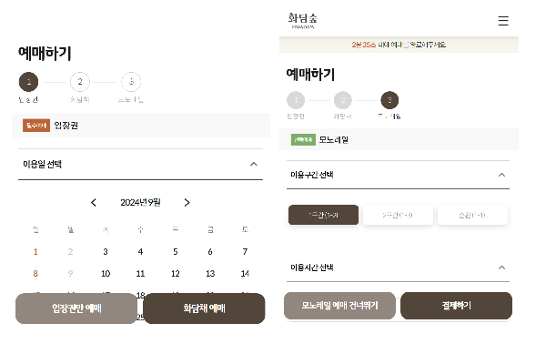 - 화담채, 모노레일 이용여부를 미리 정해놓는 것을 추천드리며 성수기에는 당일 키오스크 이용은 거의 못한다고 보셔야 합니다.
